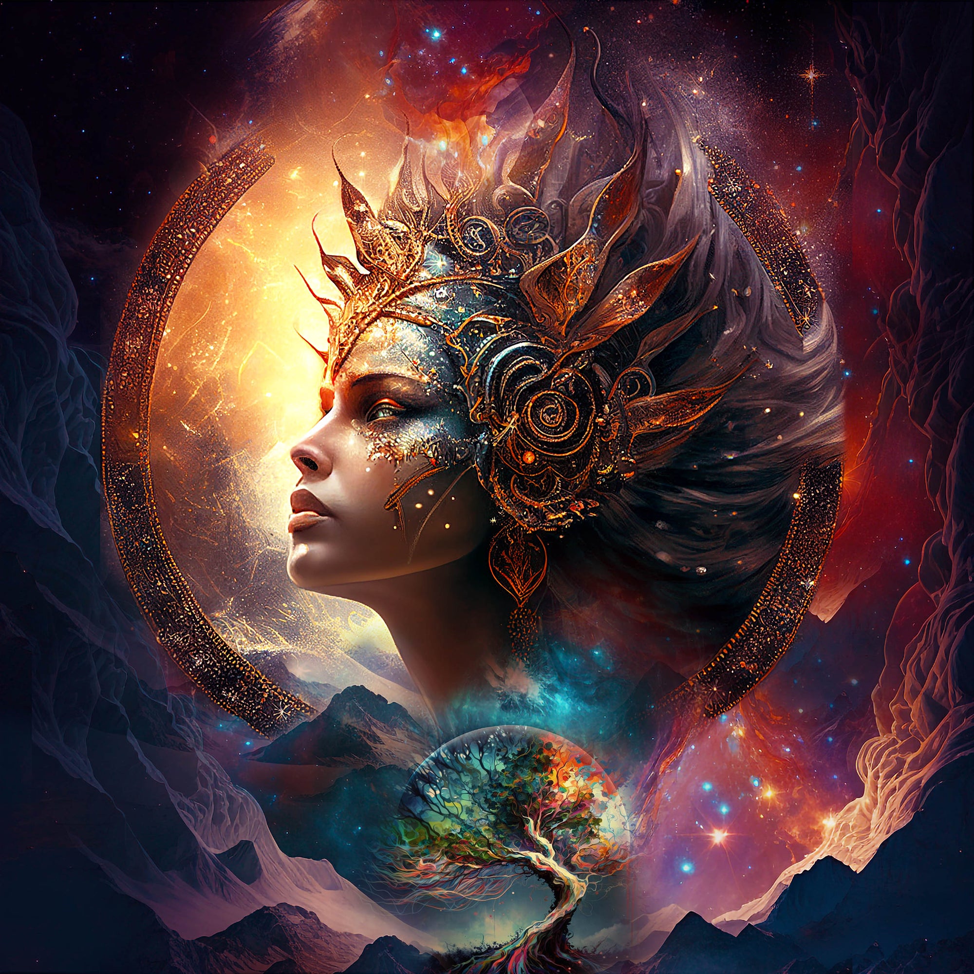 The Empress of the Stars is a stunning composition of 4 pieces of generated art, and is a must-have for anyone who appreciates art that combines feminine beauty, power, and a sense of awe.